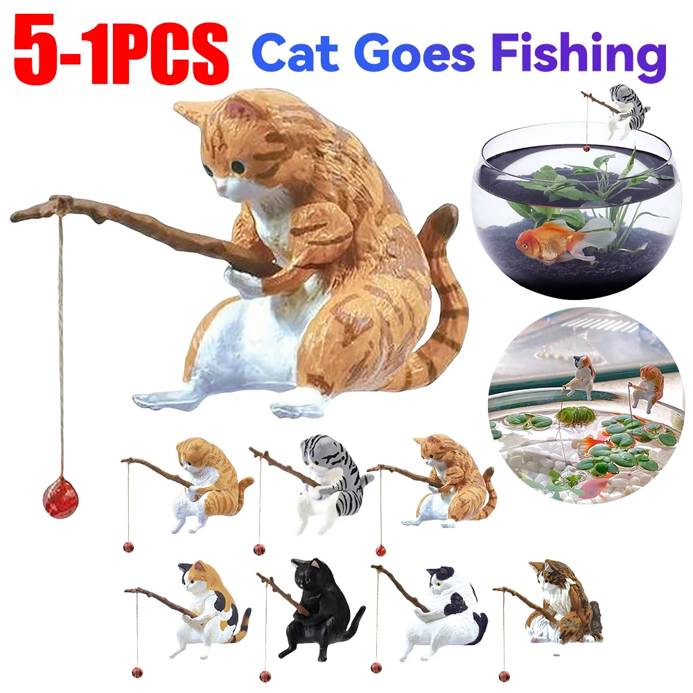 Fish Landscaping Cartoon Cat Statue Sitting Fishing Little Cat Ornament Cute Cat Landscaping Decor Home Car Interior Decoration