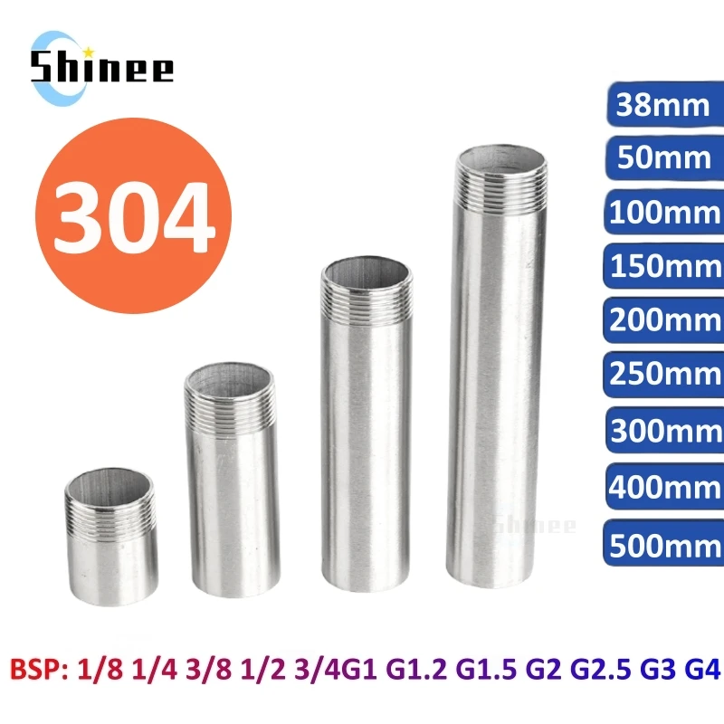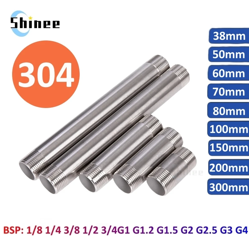 1/8" 1/4" 3/8" 1/2" 3/4" 1 BSP Male Female 50 60 80 100 150 200 300mm Barrel Coupler Nipple Pipe Fitting Connector 304 Stainless