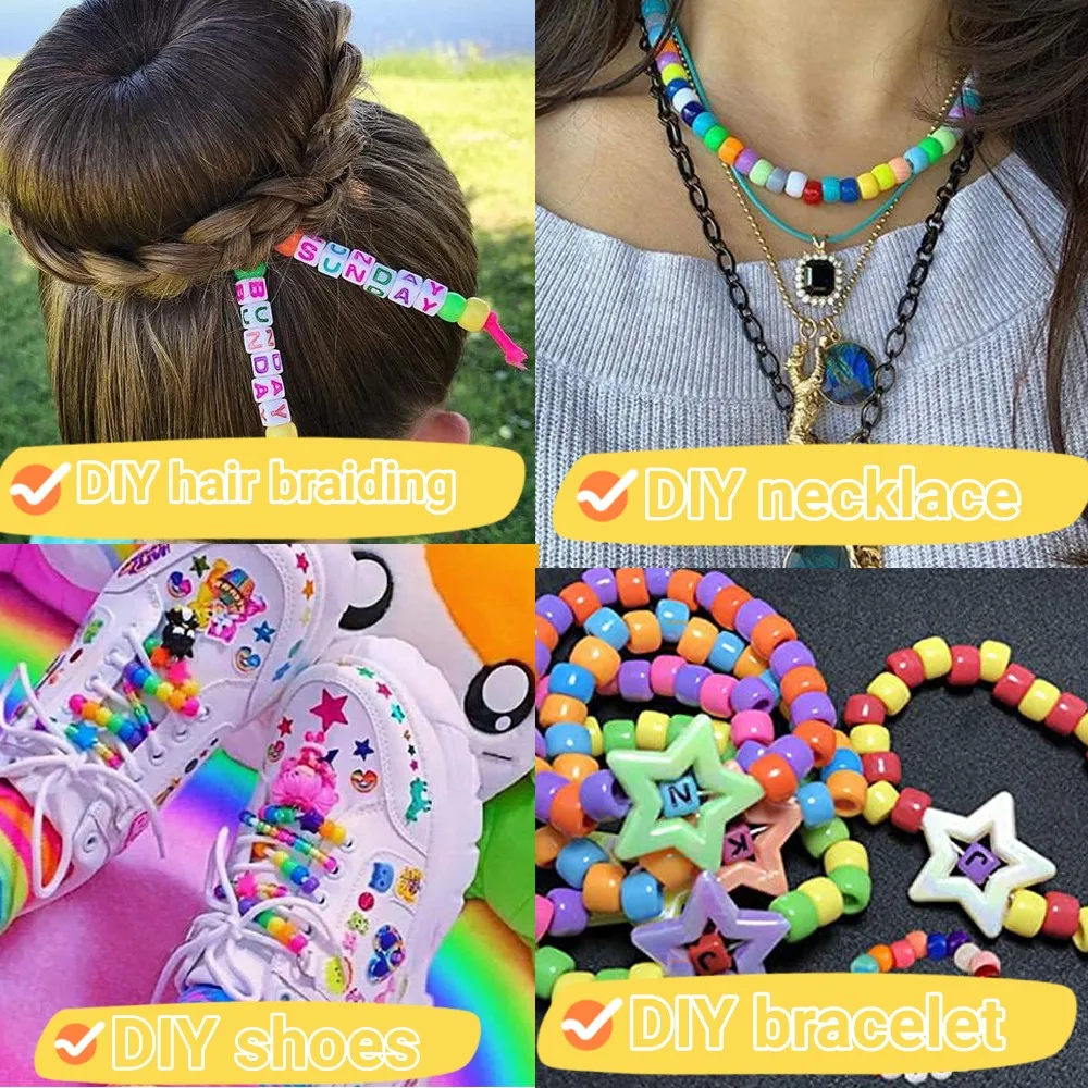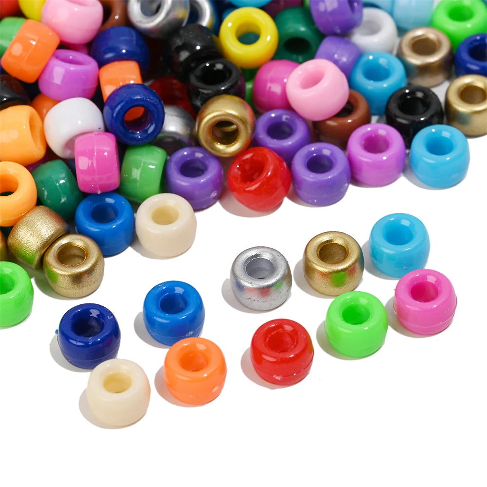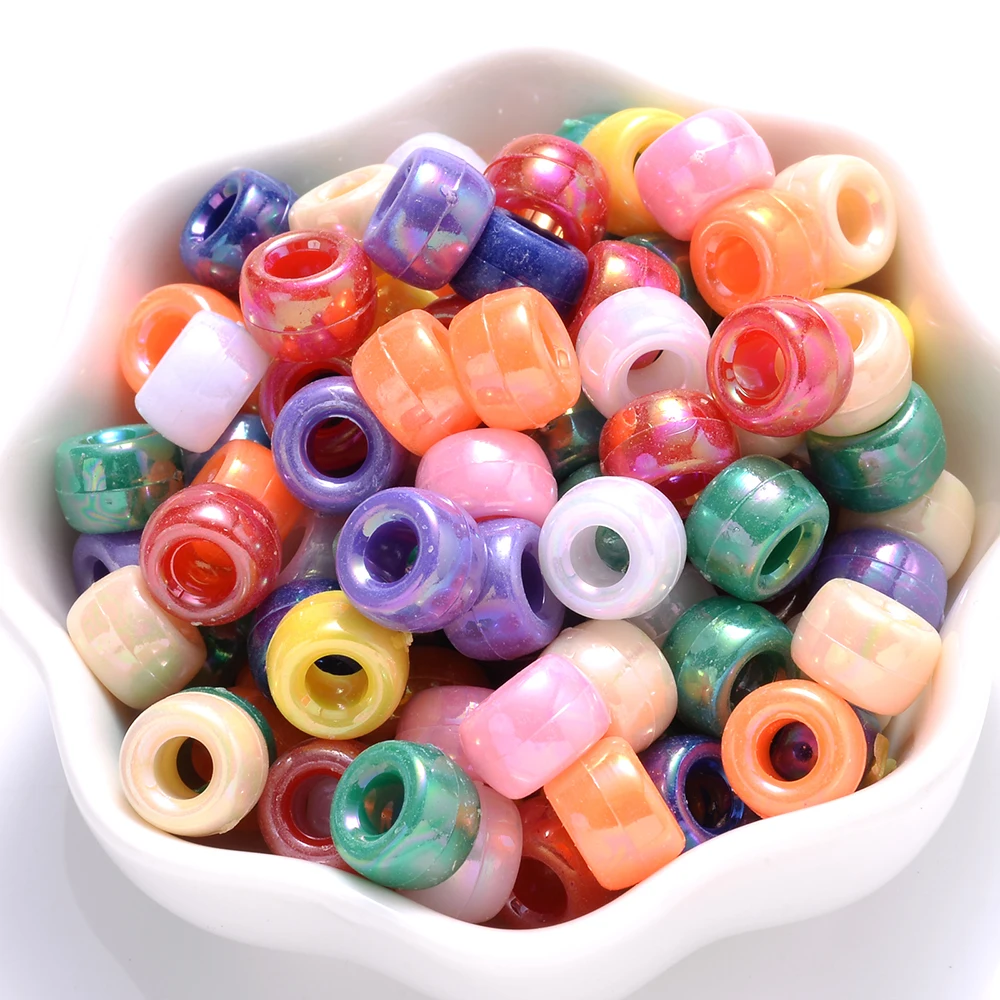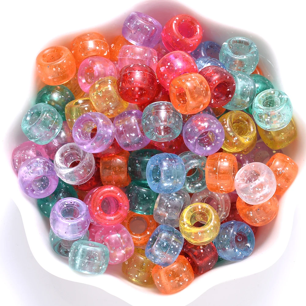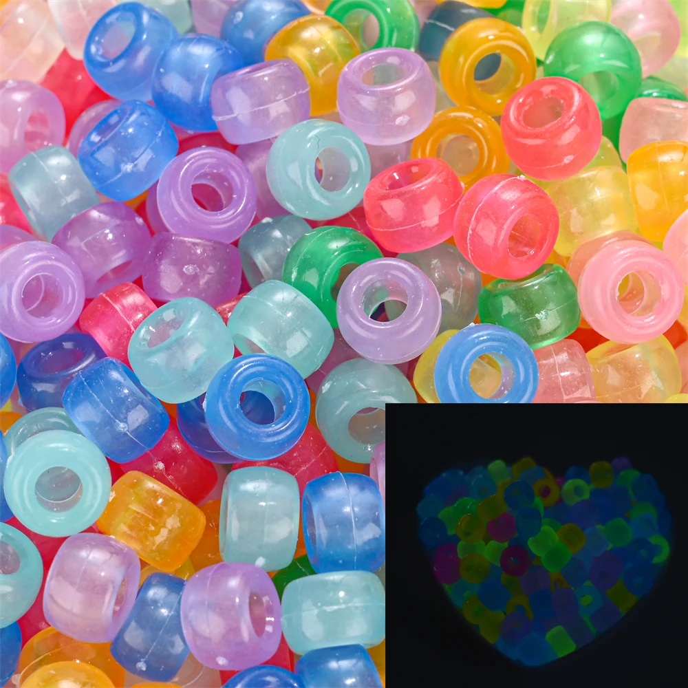 100Pcs Pony Beads 6x9mm Glitter Acrylic Beads Luminous Spacer Beads For Diy Craft Jewelry Bracelets Making Hair Supplies