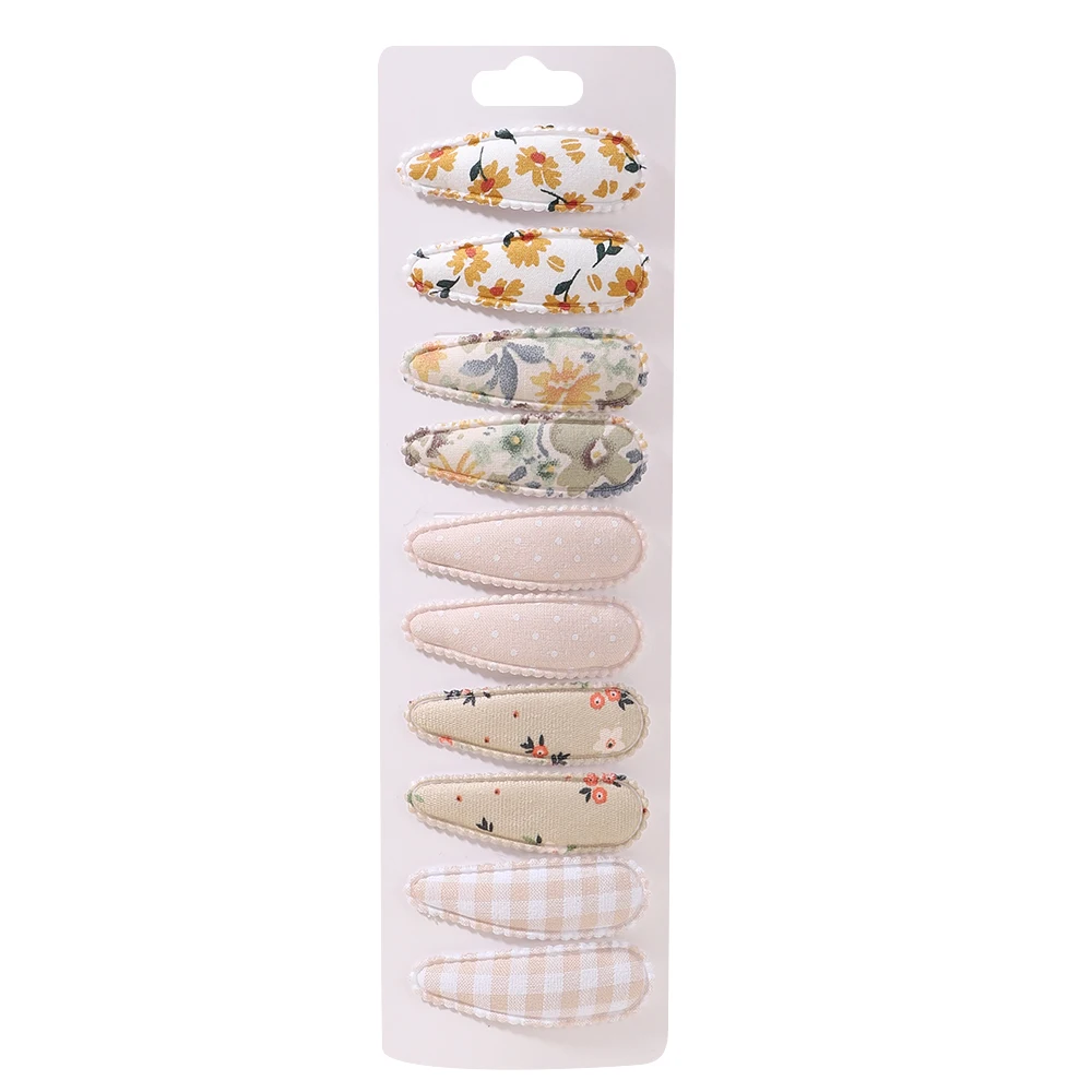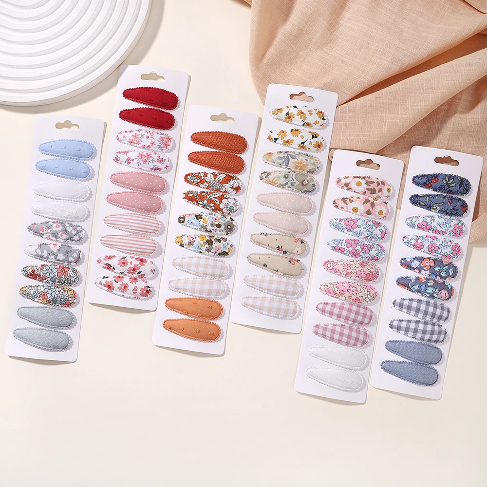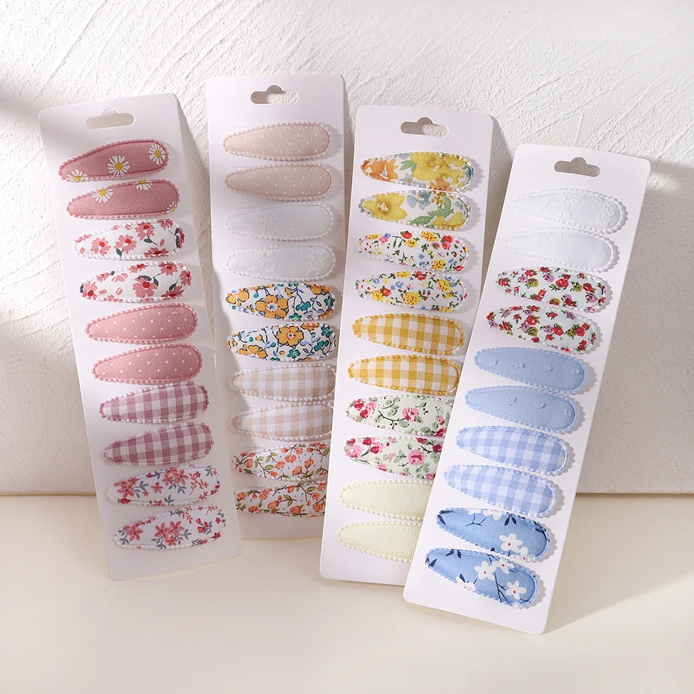 10Pcs/Set Newborn Print Cotton Alloy Hair Bow Snap Clips Fabric Plaid Hairpins Girl Kid Headwear Baby Hair Accessories Wholesale