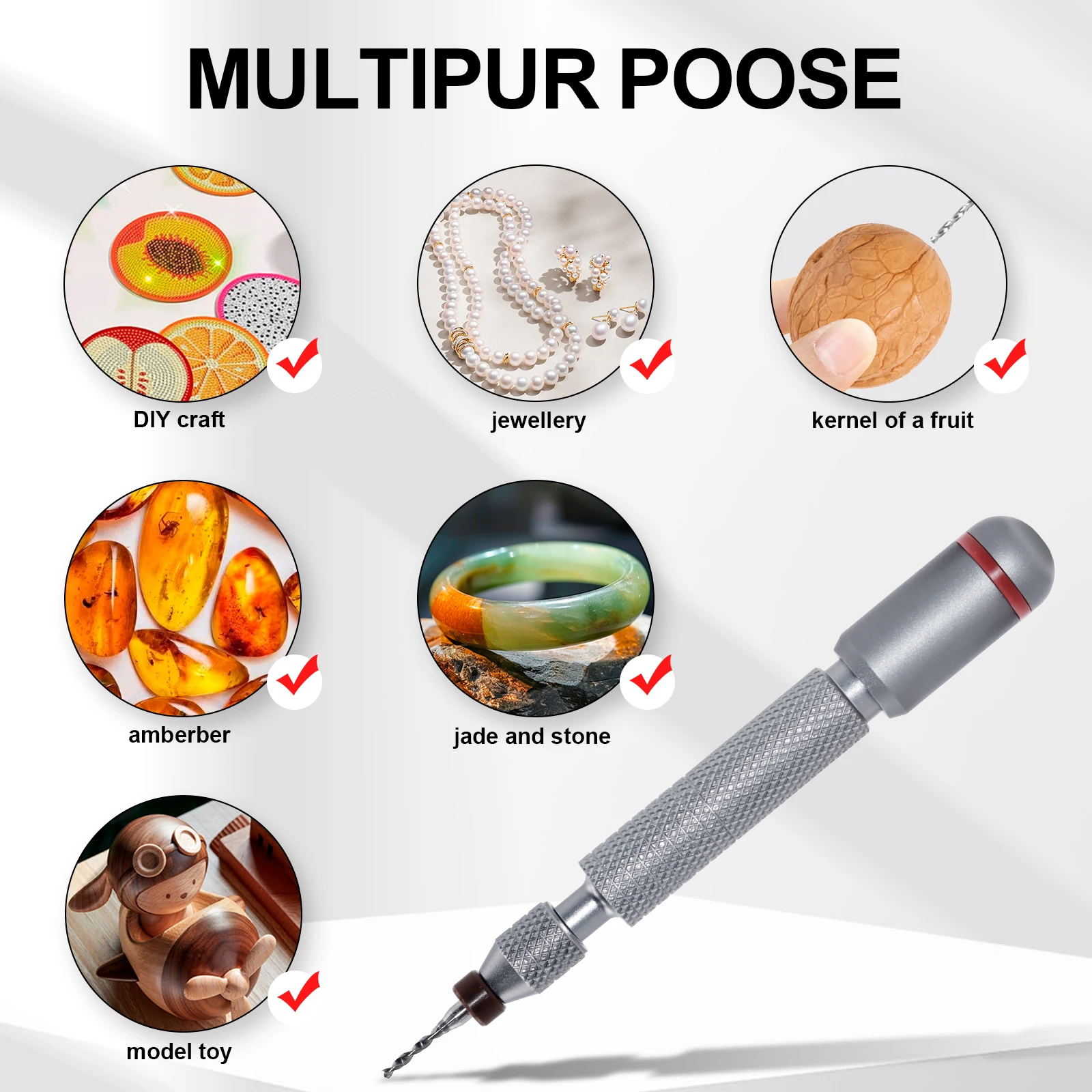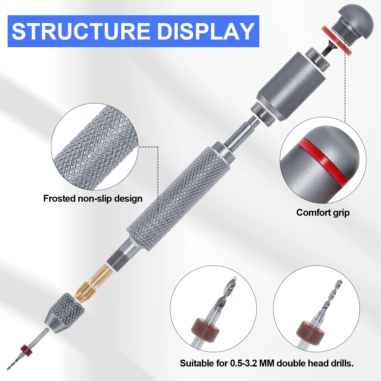 11 or 21-Piece Needle Vise Set Decompression Hand Twist Drill Double Bearing Rotary Interchangeable Bits of Different Sizes