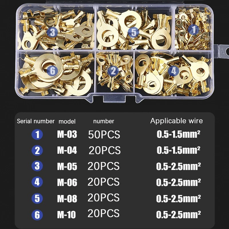 150PCS M3/M4/M5/M6/M8/M10 Ring Lugs Eyes Copper Crimp Terminals Cable Lug Wire Connector Non-insulated Assortment Kit