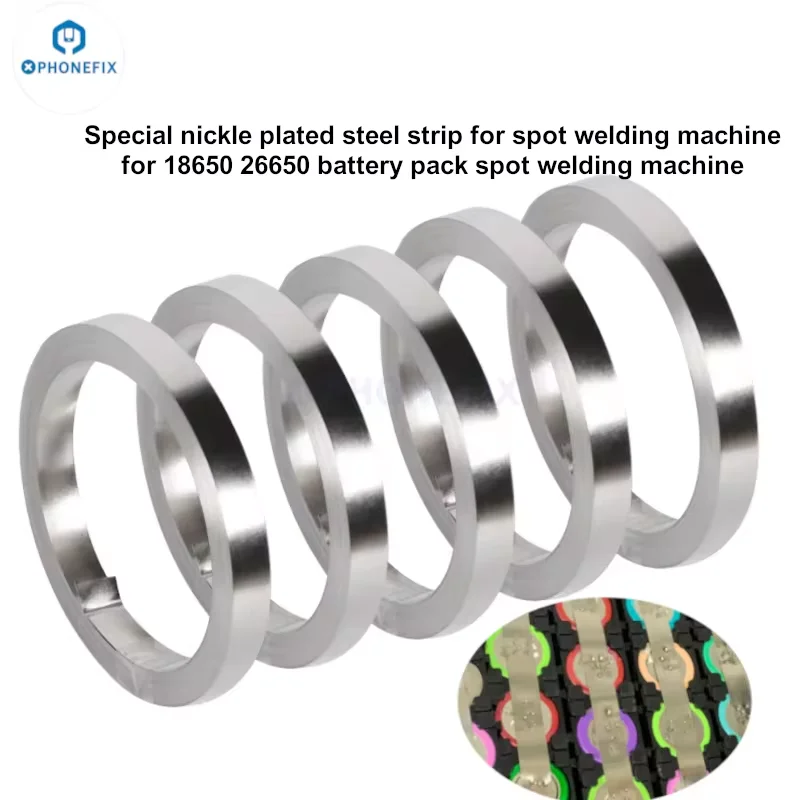3GOA high purity 18650 battery nickel strip lithium battery connector 1M 5M 10M nickel sheet for iPhone mobile phone battery spot welding. Nickel-plated steel strips with excellent electrical conductivity and strong corrosion resistance, works with spot welders are widely used in power tools, mobile phone batteries, laptop batteries, mobile batteries, polymer batteries, rechargeable instruments, telecommunications and light bulbs, etc.