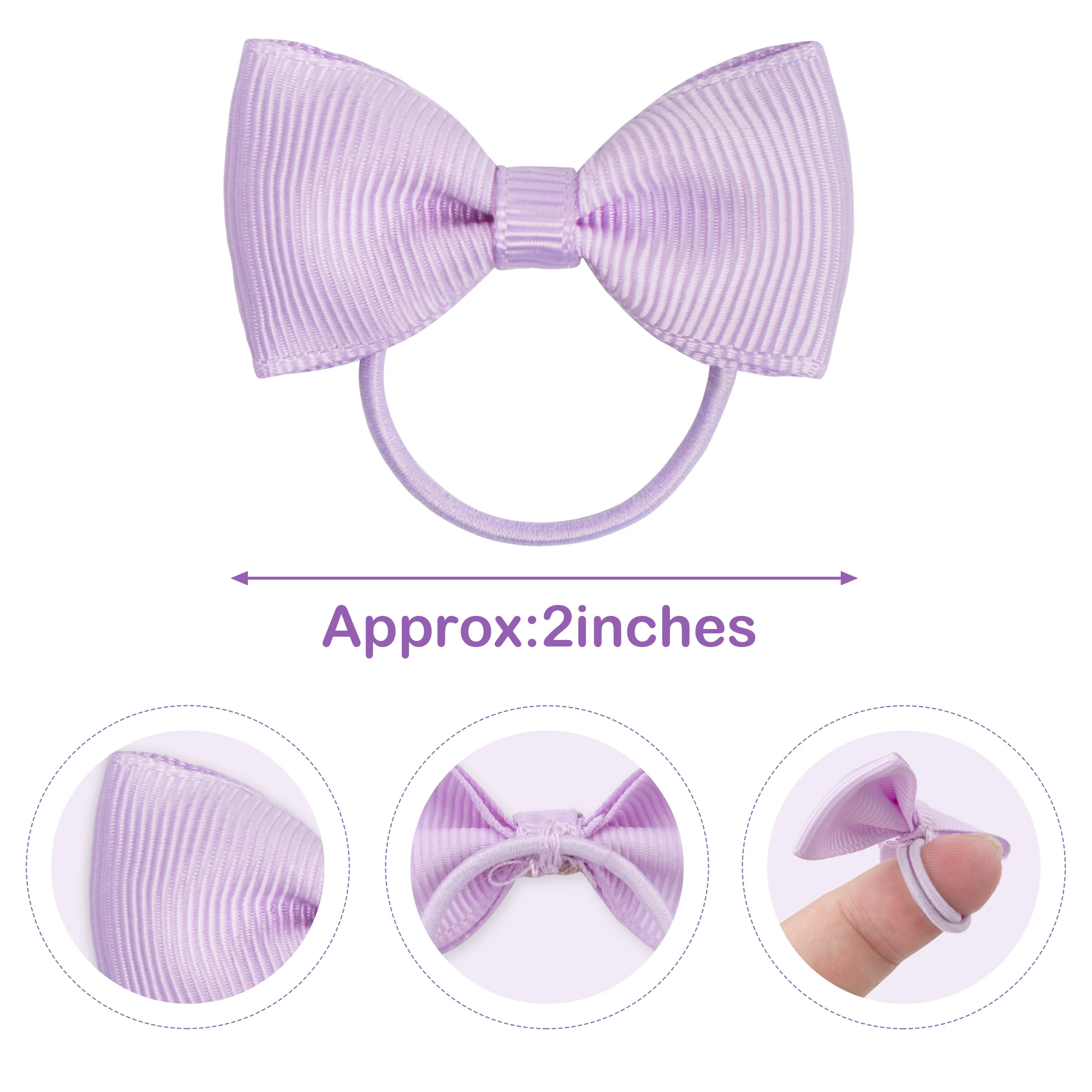 Material: Grosgrain Ribbon; Bows Size: approx 2 inches ; Elastic rubber band diameter: 3.8 cm;