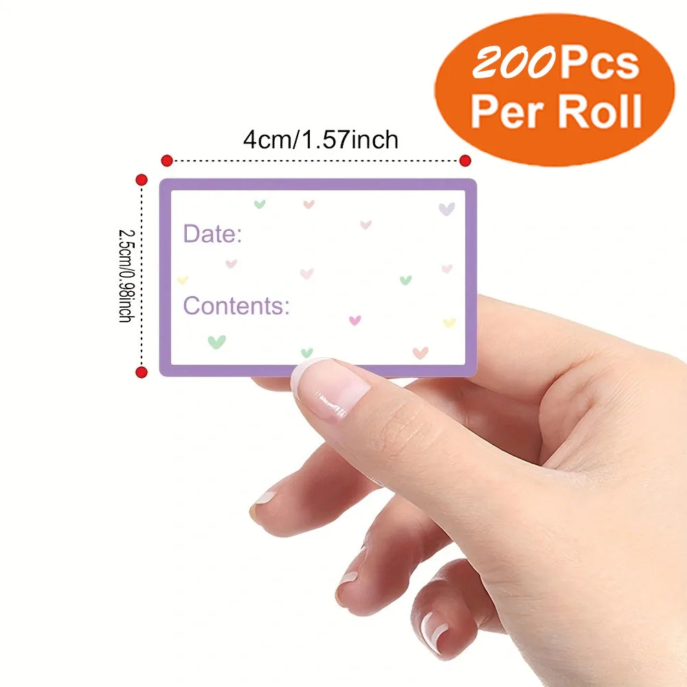 200Pcs/Roll Fridge&Freezer Safe Date/Content Food Catalog Sticker 1.0*1.57inch Kitchen Refrigerator Reminder Food Storage Labels