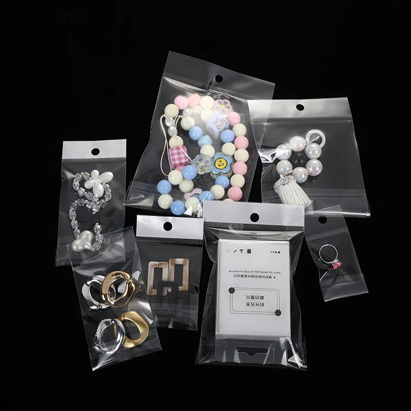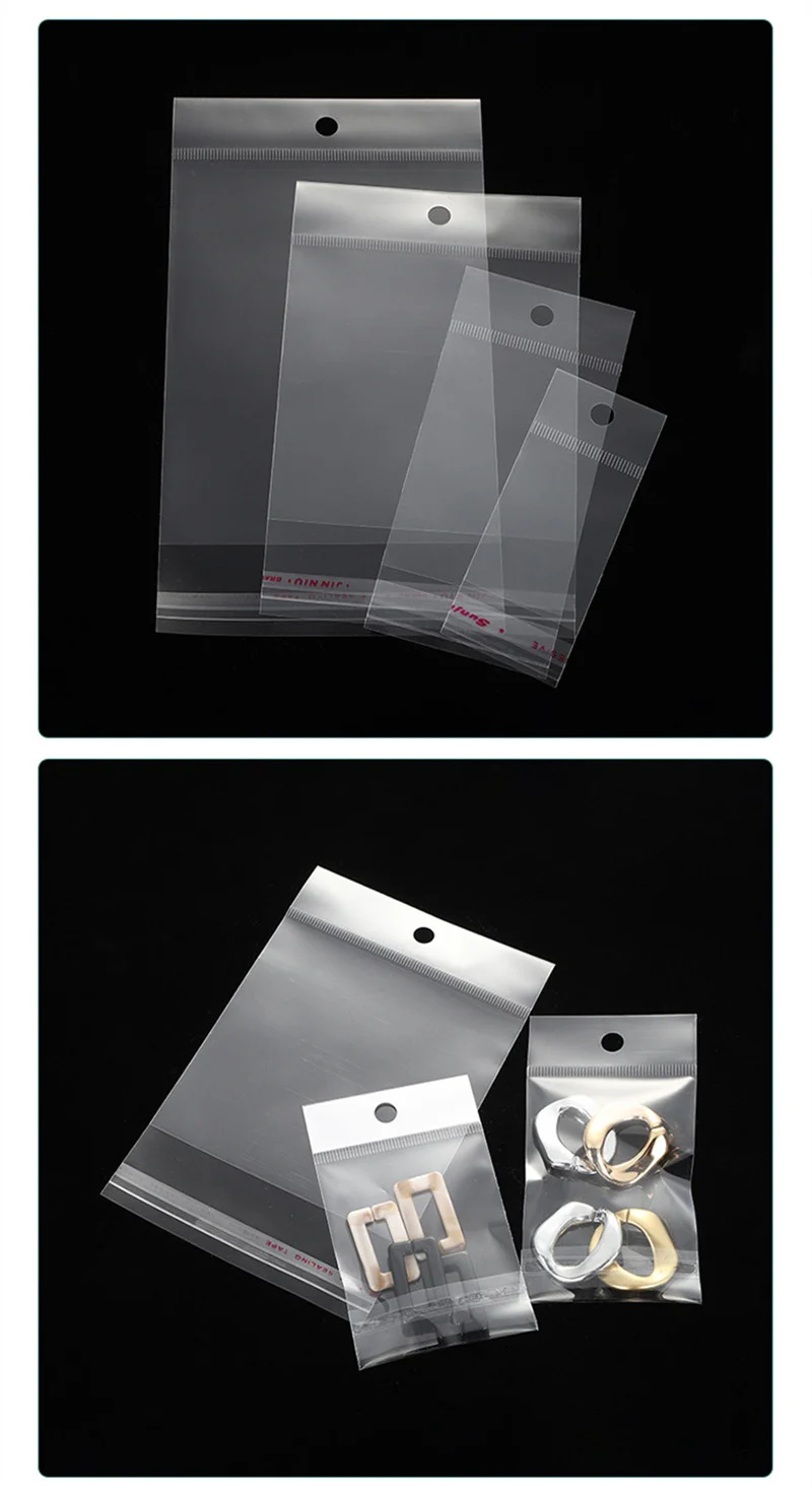 200pcs Transparent Hanging Hole Plastic Bags Jewelry Self-adhesive Packaging Bags Accessories Storage Cellophane Bag Wholesale