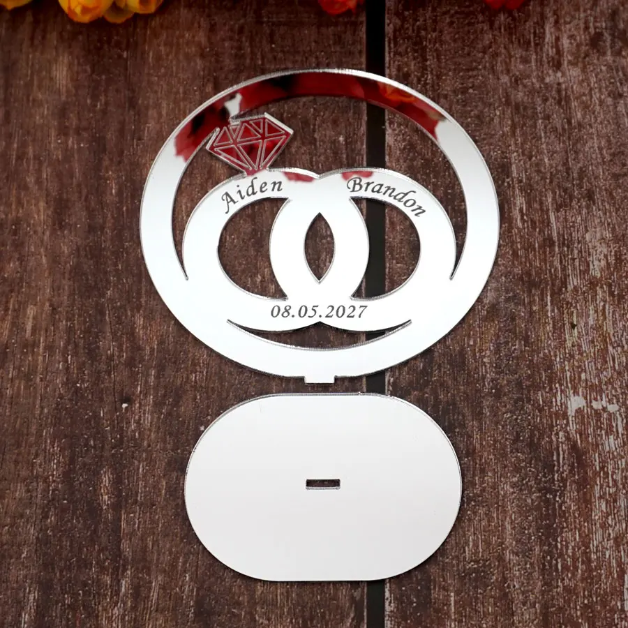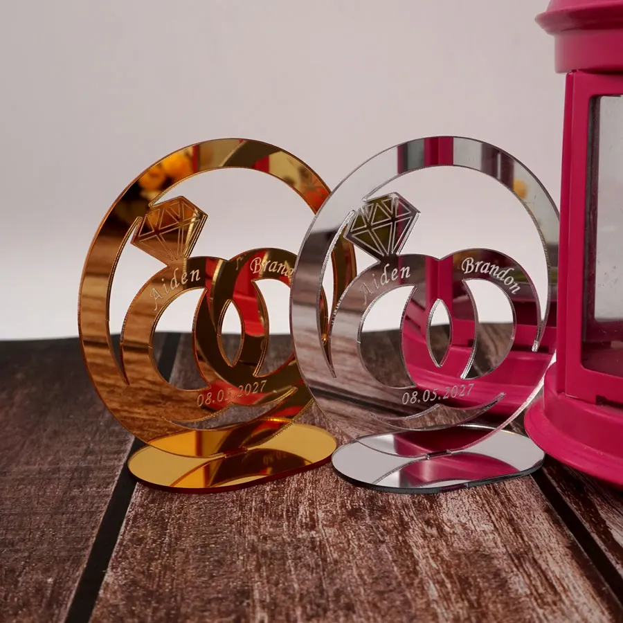 20pcs Custom Acrylic Mirror Circle with Double Rings Table Standing Personalized Names & Date Wedding Party Ornament Gift 10cm