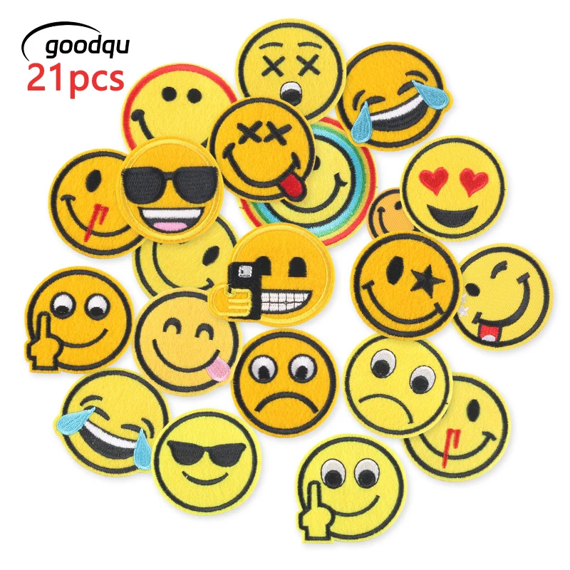21 Pcs Lots Expression Cute Iron On Patches For Clothing Kids Embroidered Thermoadhesive Backpack Jacket Sew Parches Diy Fabric