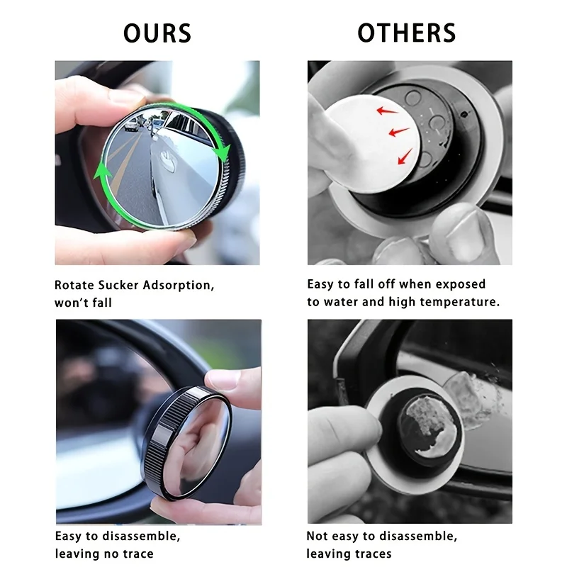 ● The blind spot mirror is installed with a suction cup, and the suction cup is tightened by rotating the shell. Make the round mirror more firmly attached to the rearview mirror.