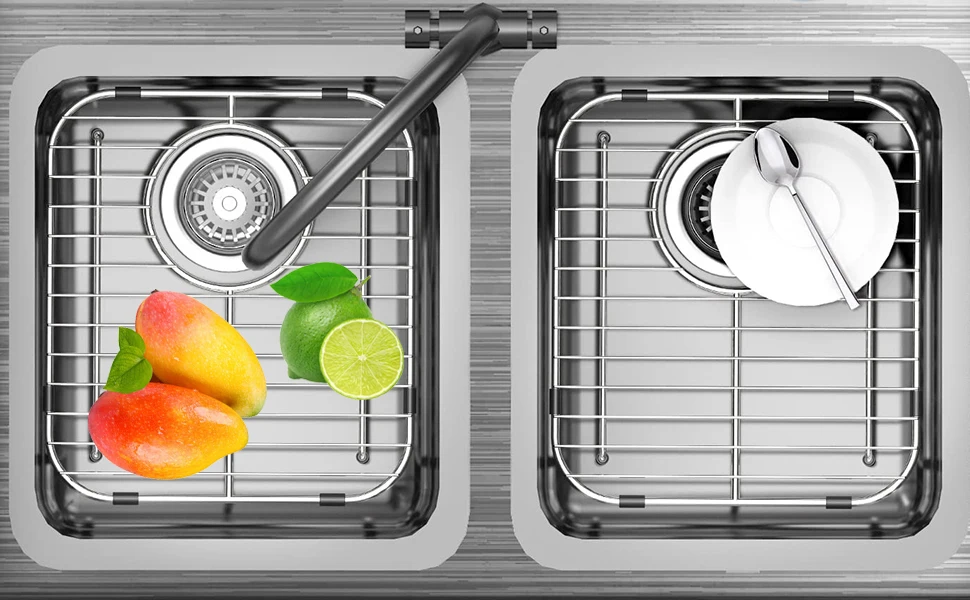 Multifunctional Sink Bottom Grid Rack sink rack can protect your kitchen sink while meet your different need. They are perfect in-sink cooling rack, defrost grid and drying rack to dry dishes, tablewares, vegetables, fruits, glassware, utensils and pans.