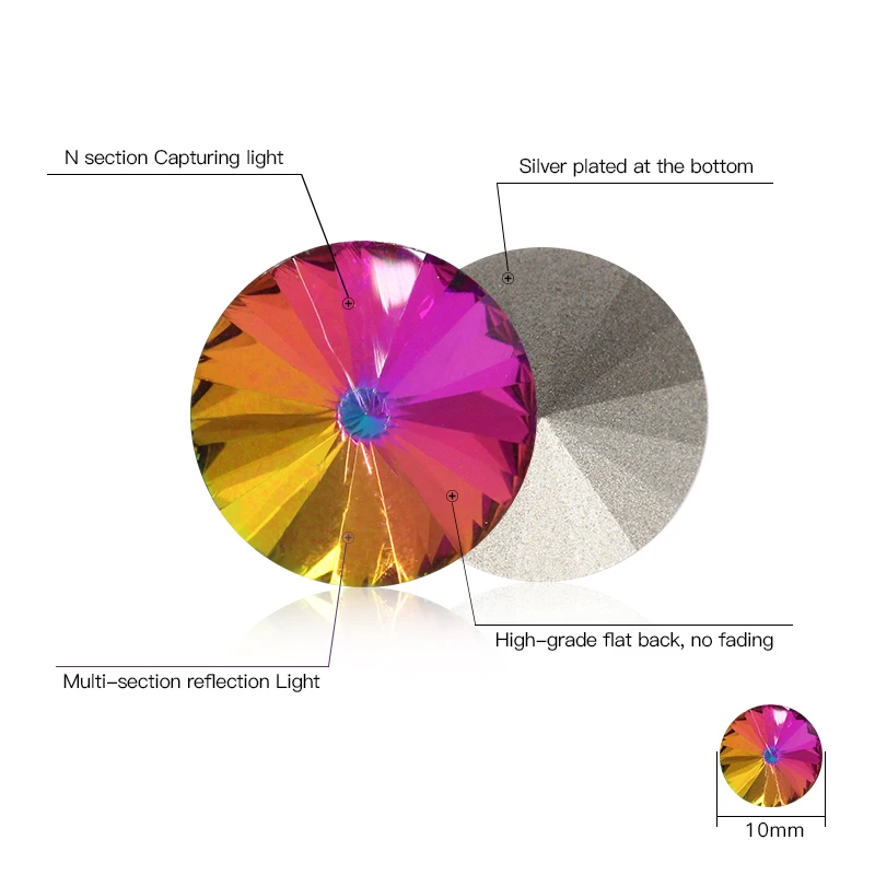 6 -14mm Glitter Pointback Rhinestones AB Color Glass Strass Crystals For Needlework DIY Opal Color Rivoli Rhinestones