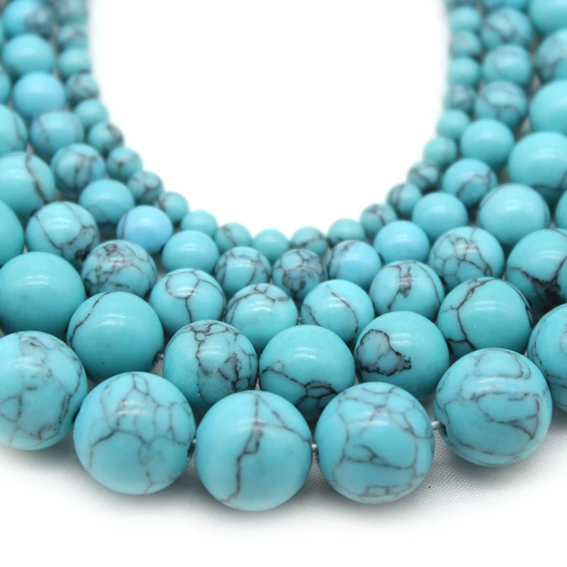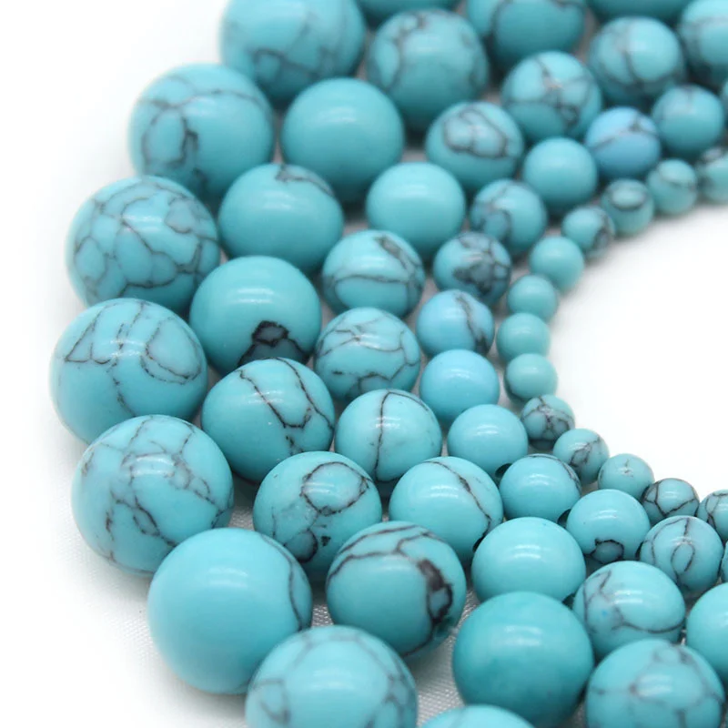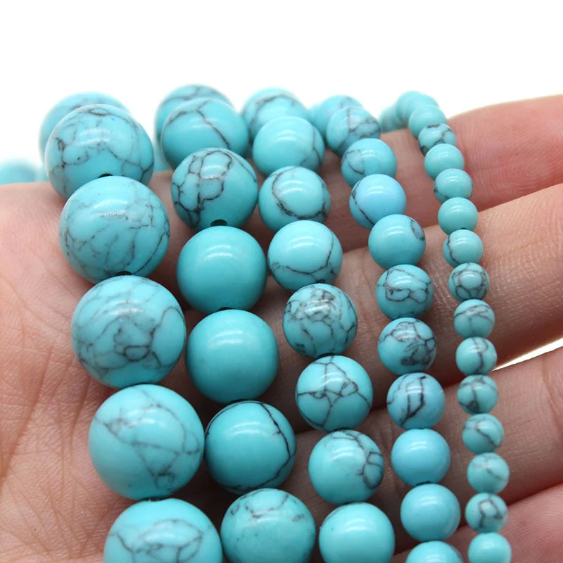 6/8/10mm Blue Turquoise Beads AAAAA Natural Gemstone Beads Round Loose Beads for Jewelry Making DIY Charm Bracelets Necklaces