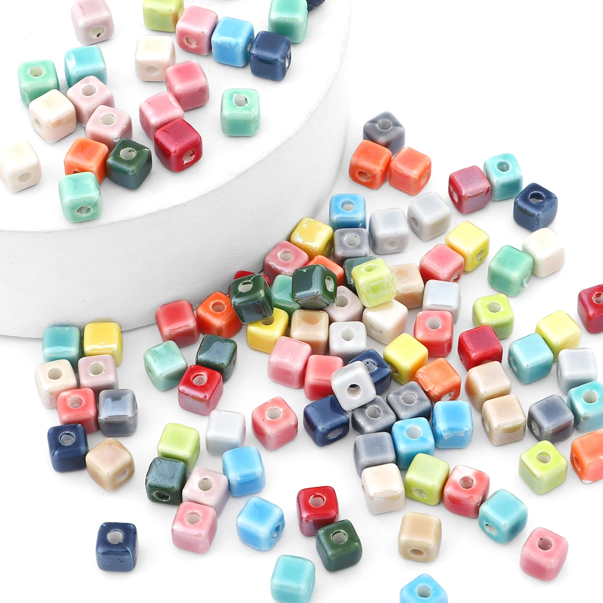 6mm 10pcs Fashion Colors 6mmmm Square Beads Cube Ceramic Beads DIY 2.0mm Hole Handmade Porcelain Bead For Jewelry Making