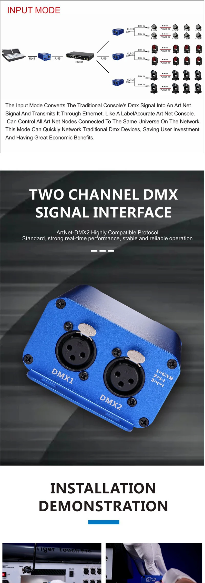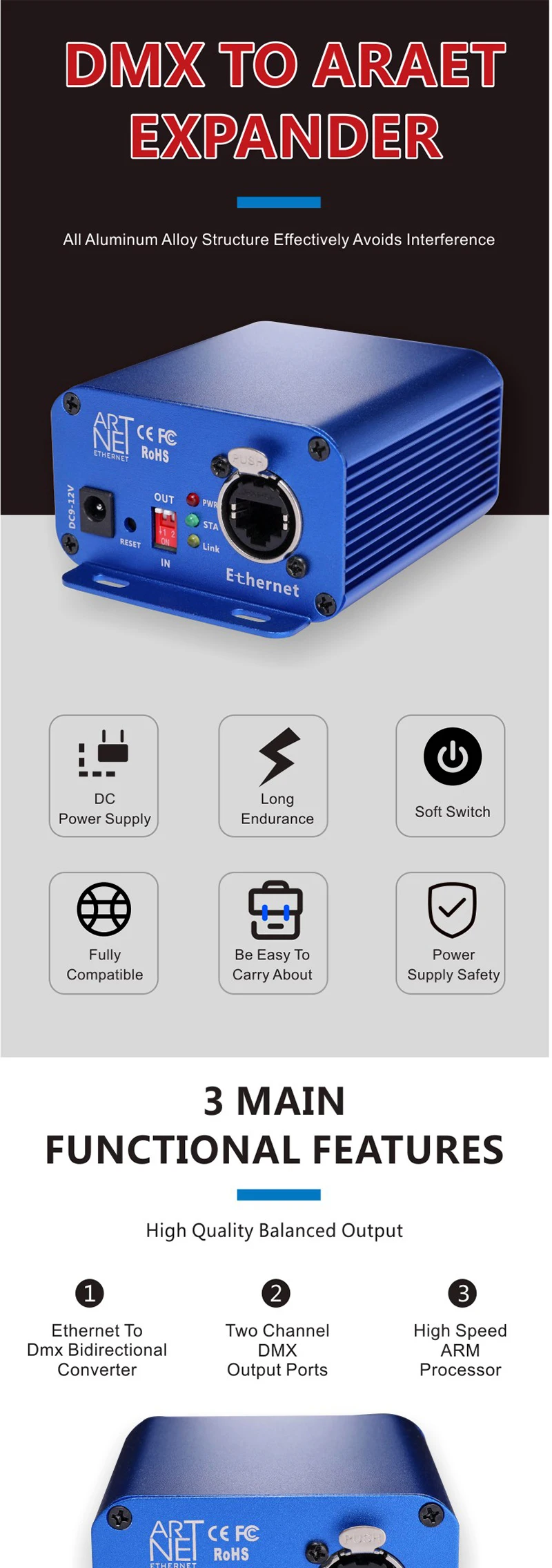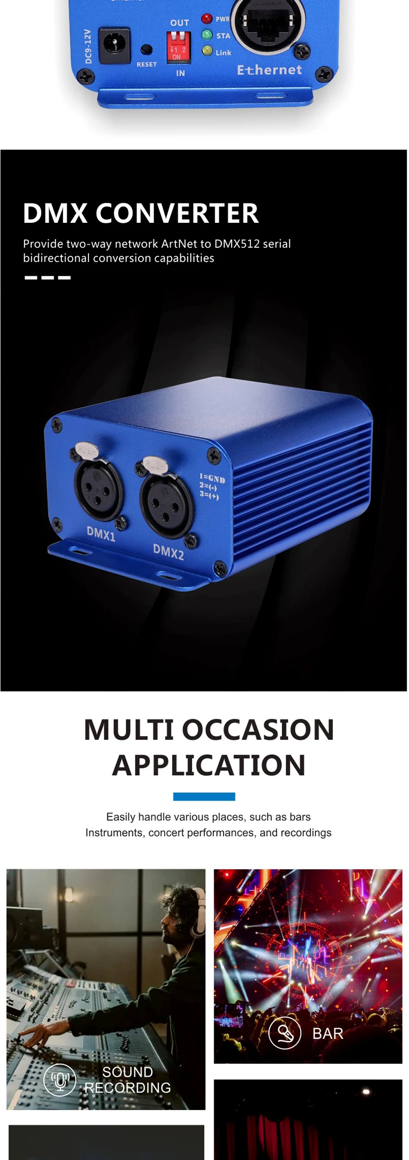 Artnet to DMX Controller, DMX Ethernet Lighting Controller, Professional Artnet DMX Interface , 3 Pin Output, Aluminum Housing