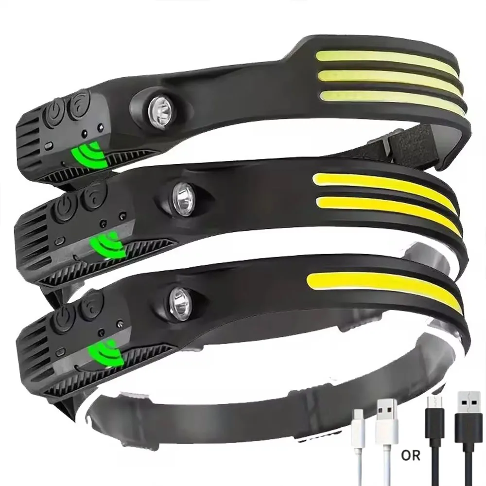 COB LED Headlamp Induction Headlight USB Rechargeable Built-in Battery Sensor Head Flashlight For Outdoor Camping Fishing Light