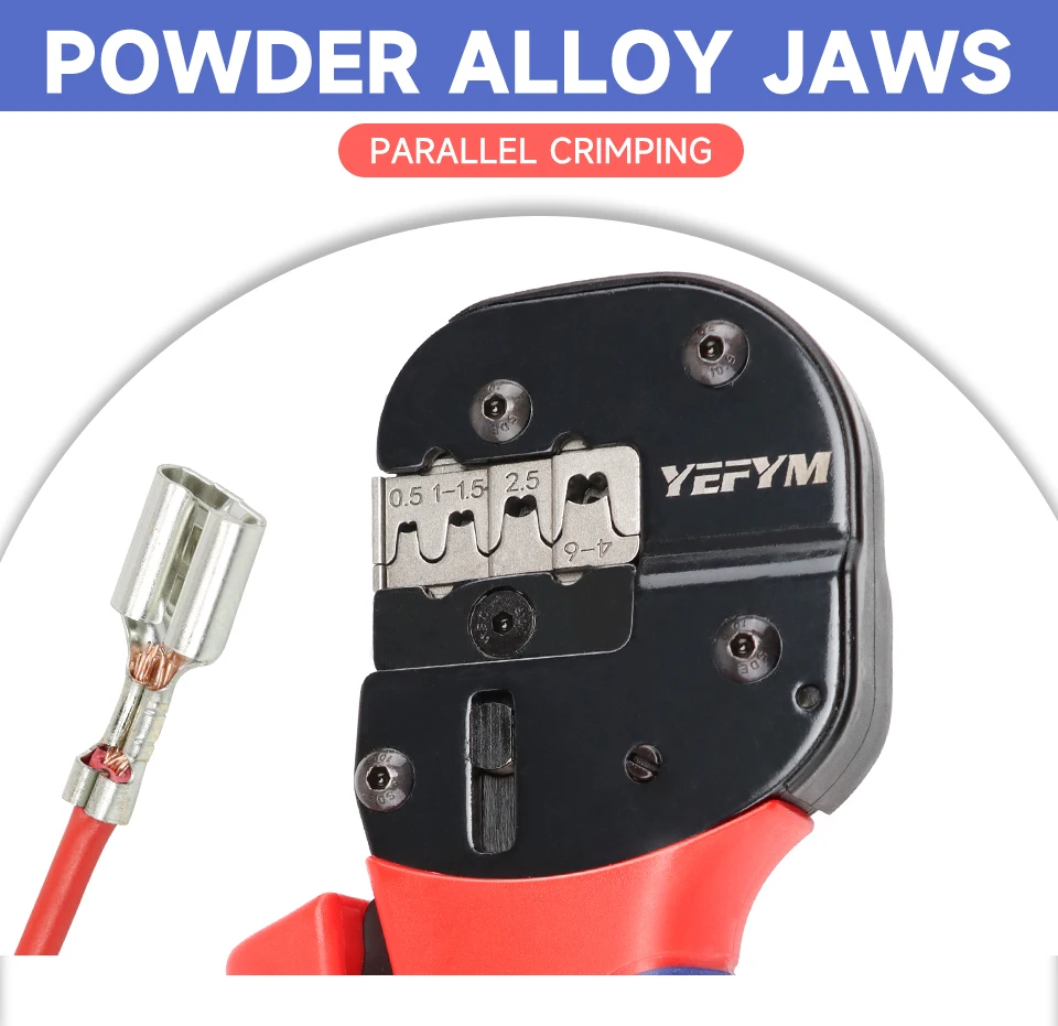 Crimping Tool For Non-Insulated Open Barrel Terminals & Receptacles Ratcheting Wire Crimpers AWG 20-10 (0.5-6mm²) YFP-04B