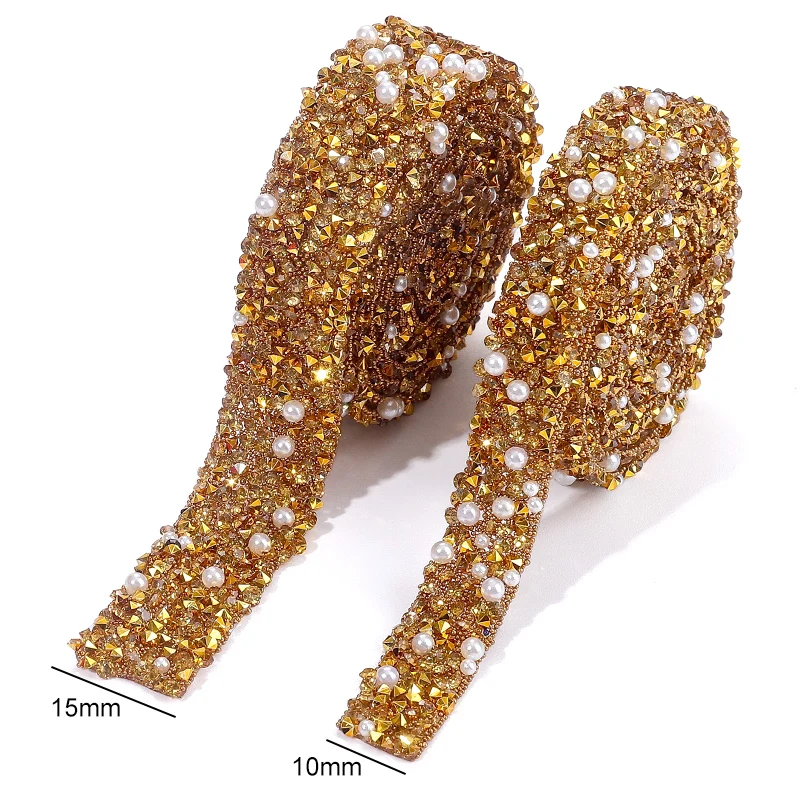 DUCTYSTAL 10/15mm Rhinestone Beaded Trim Resin Rhinestone Hotfix Ribbon Iron on Chain for DIY Garment,Shoes,dress decor