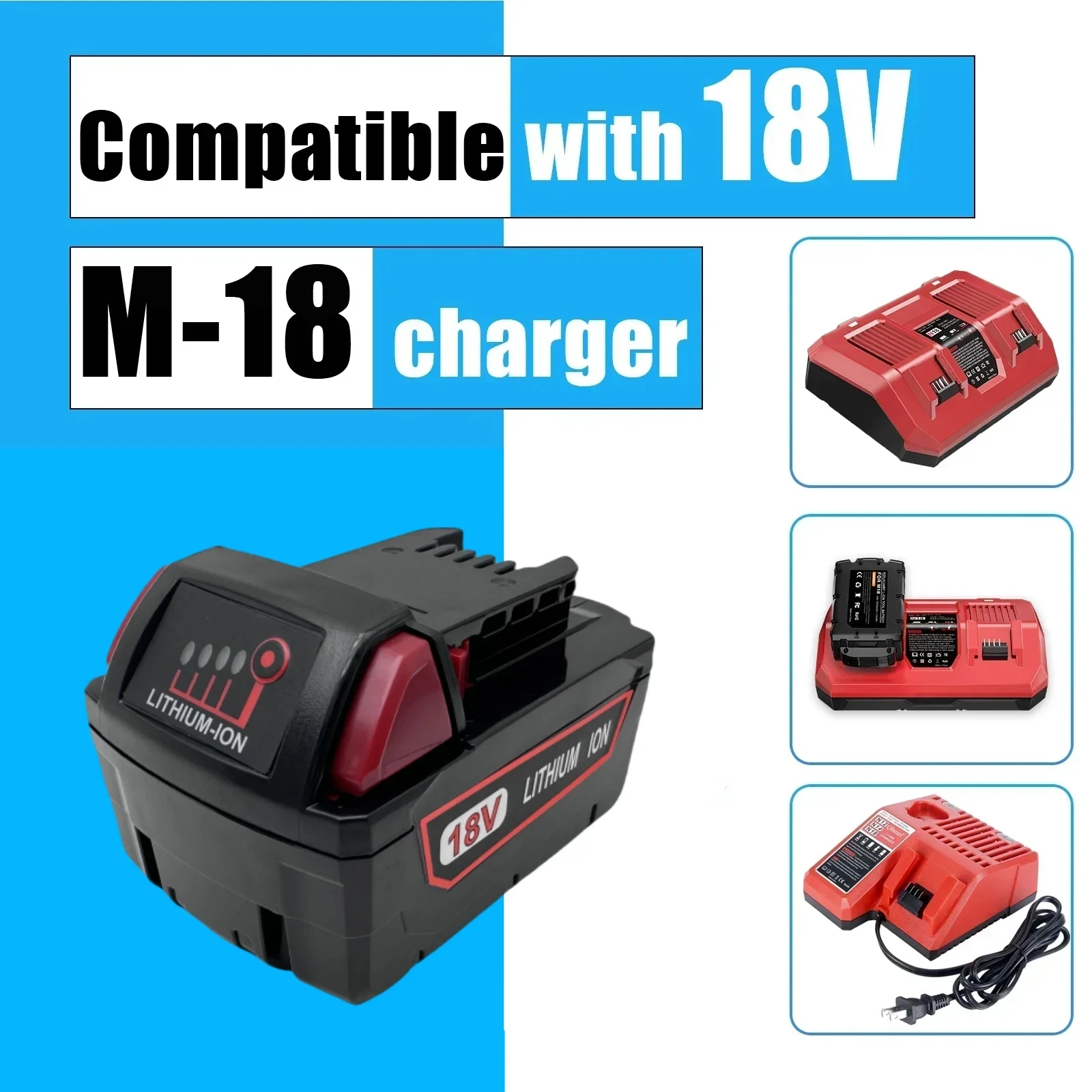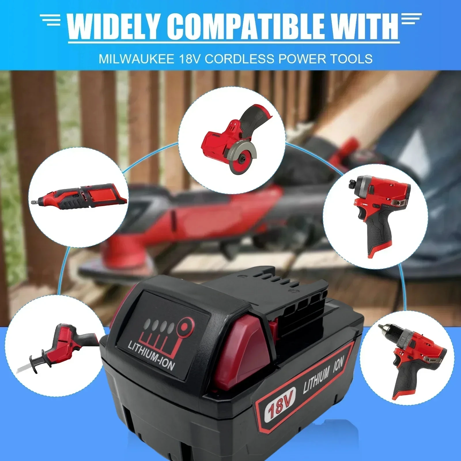 For Milwaukee M18 Power Tool Battery, Charger, BR, XC, 18V, 6000mAh M18B5, 48-11-1860, Built-in 18650 Battery