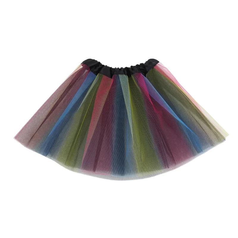 Girls Cheerleading Rainbow Tutu Skirt Child Dance Party Ballet Tulle Tutu Skirt 3 Layers Princess Birthday Party Gift 2-8 Years
