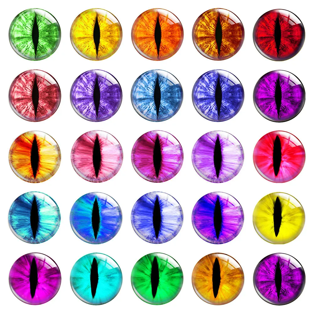 Name:Handmade Colorful Curved Glass Animal Eyes Snake Owls Tiger Ragdoll Toy Eyeball Photo Cabochon Round Demo Flat Back DIY Sewing