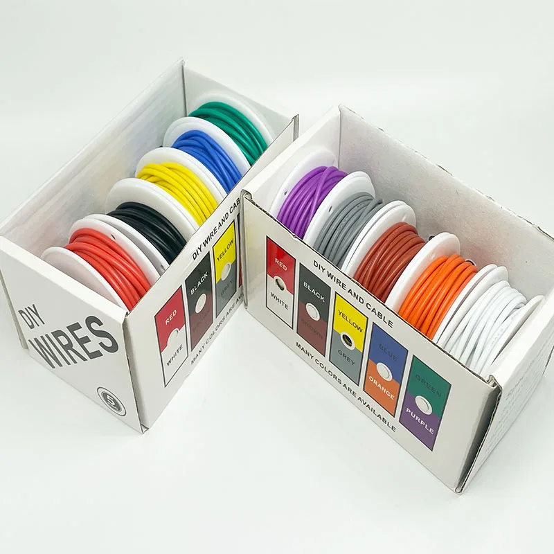 Heat Resistant Flexible Silicone Wire 30AWG 28AWG 26AWG 24 22 20AWG 18AWG 16AWG Stranded Tinned Copper Wire, 5 Colour Mixed Set