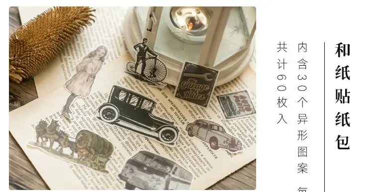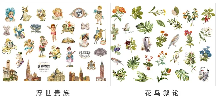 Journamm 60pcs Vintage Stickers Decor Journaling Stationery Washi Paper Retro Material Flowers Leaves Plants Deco Stickers
