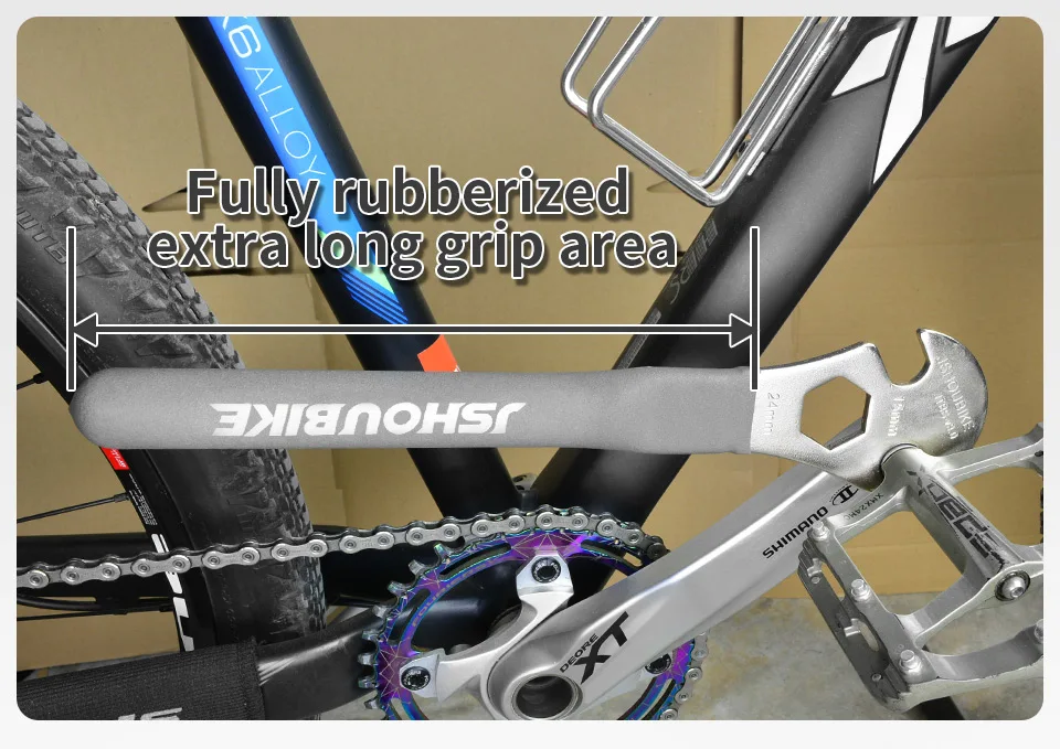 24mm inner hex hole, compatible with our shop's bottom bracket removal toolAll-inclusive rubber anti-skid handle won't dig into the hand like flat wrenches