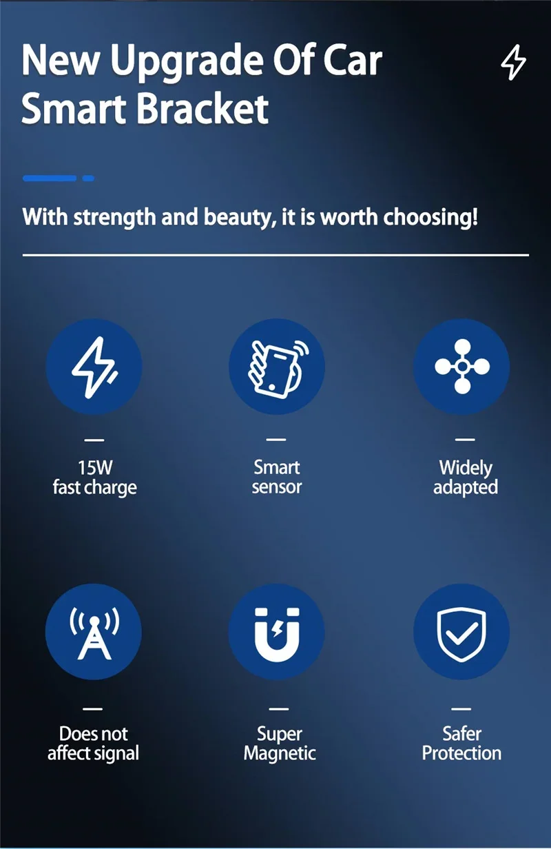 Magnetic Car Wireless Charger Stand Bracket Magnet Car Phone Holder Mount Fast Charging Station for iPhone15 14 13 12 11 Pro Max