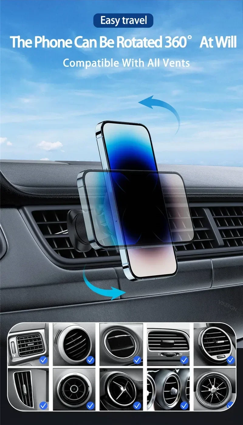 Safe Installation: This car phone holder is equipped with an upgraded version of the ventilation clip, which can securely fix your smartphone on the car's vent.