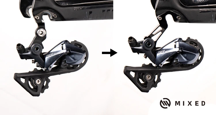 It also positions the body of the derailleur more underneath the cassette so that it is less exposed to potential impacts. Fewer connections also mean stronger structure and less wobbling.