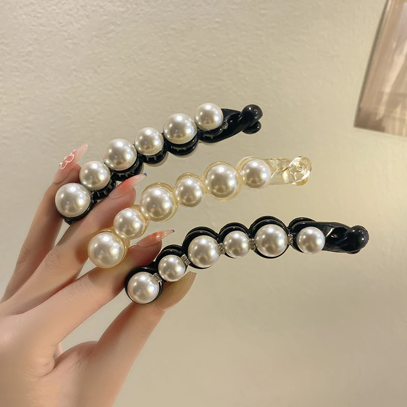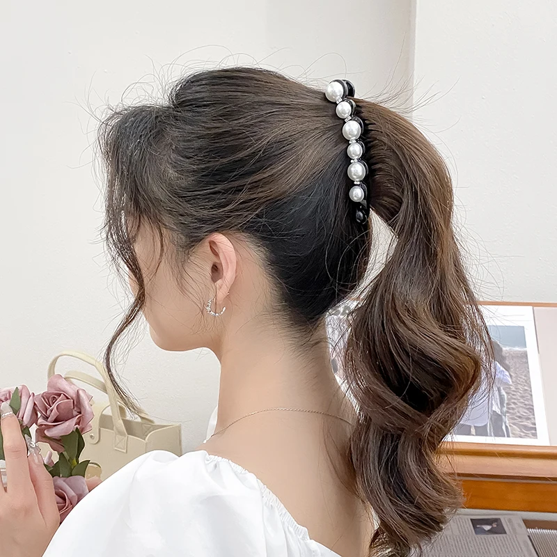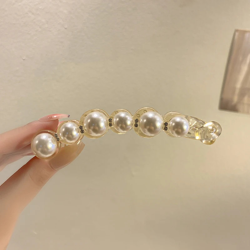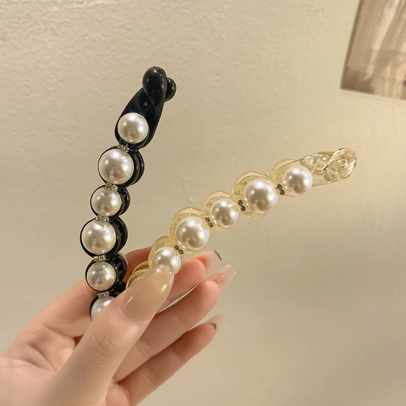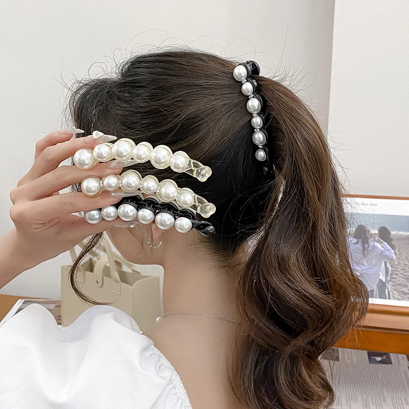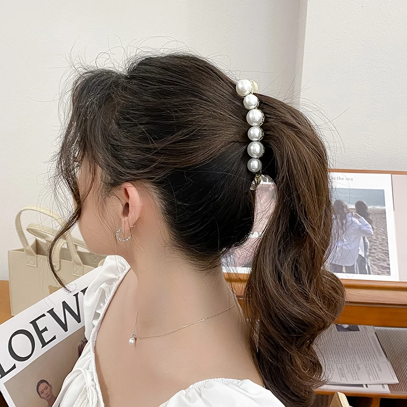 Pearls Hairpins Banana Clip for Women Ponytail Twist Claw Sweet Hairpin Girl Ponytail Barrettes Hairgrips Hair Accessories