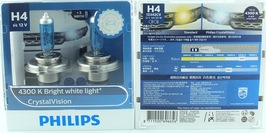 Philips H4 H7 H11 HB3 HB4 H8 H1 H3 9005 Crystal Vision Car Halogen Headlight 4300K Bright White 5000K Diamond Vision Auto Lamps