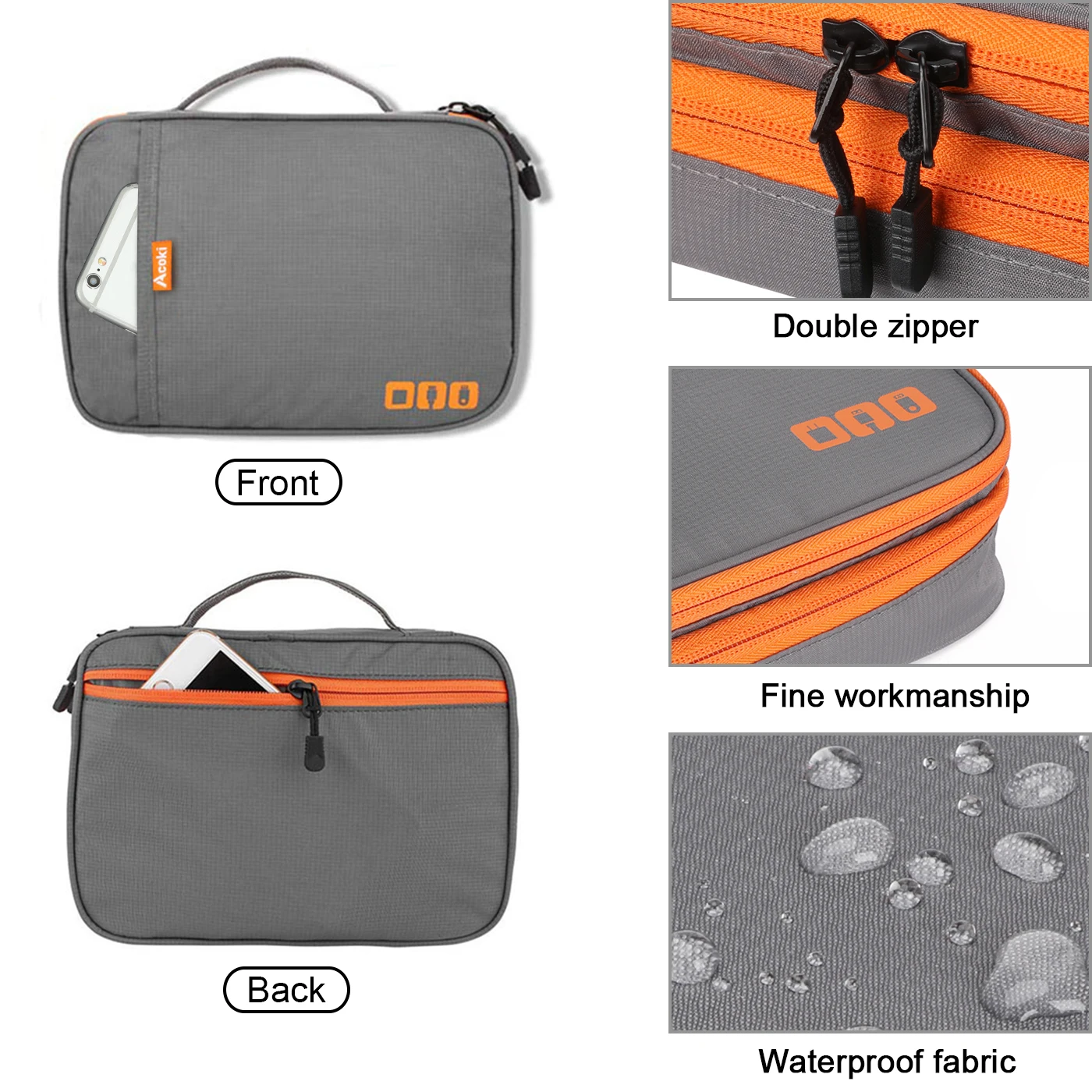 Size: 320*230*45mm.Perfect size of this cable organizer bag easily fits into your briefcase, luggage and backpack.