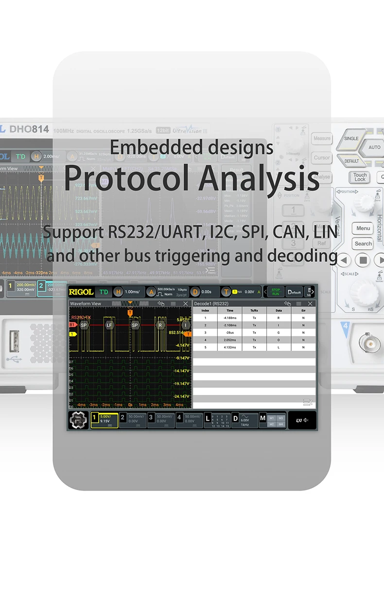 The RIGOL DHO900 Series is designed for portability, making it ideal for on-the-go testing and diagnostics.