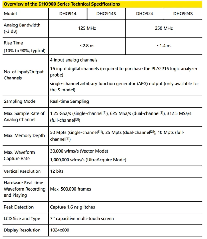 RIGOL DHO900 Series Digital Oscilloscopes Portable,125-250MHz,1.25G Sa/s, type-c Power Supply, DHO914/DHO914S/DHO924/DHO924S