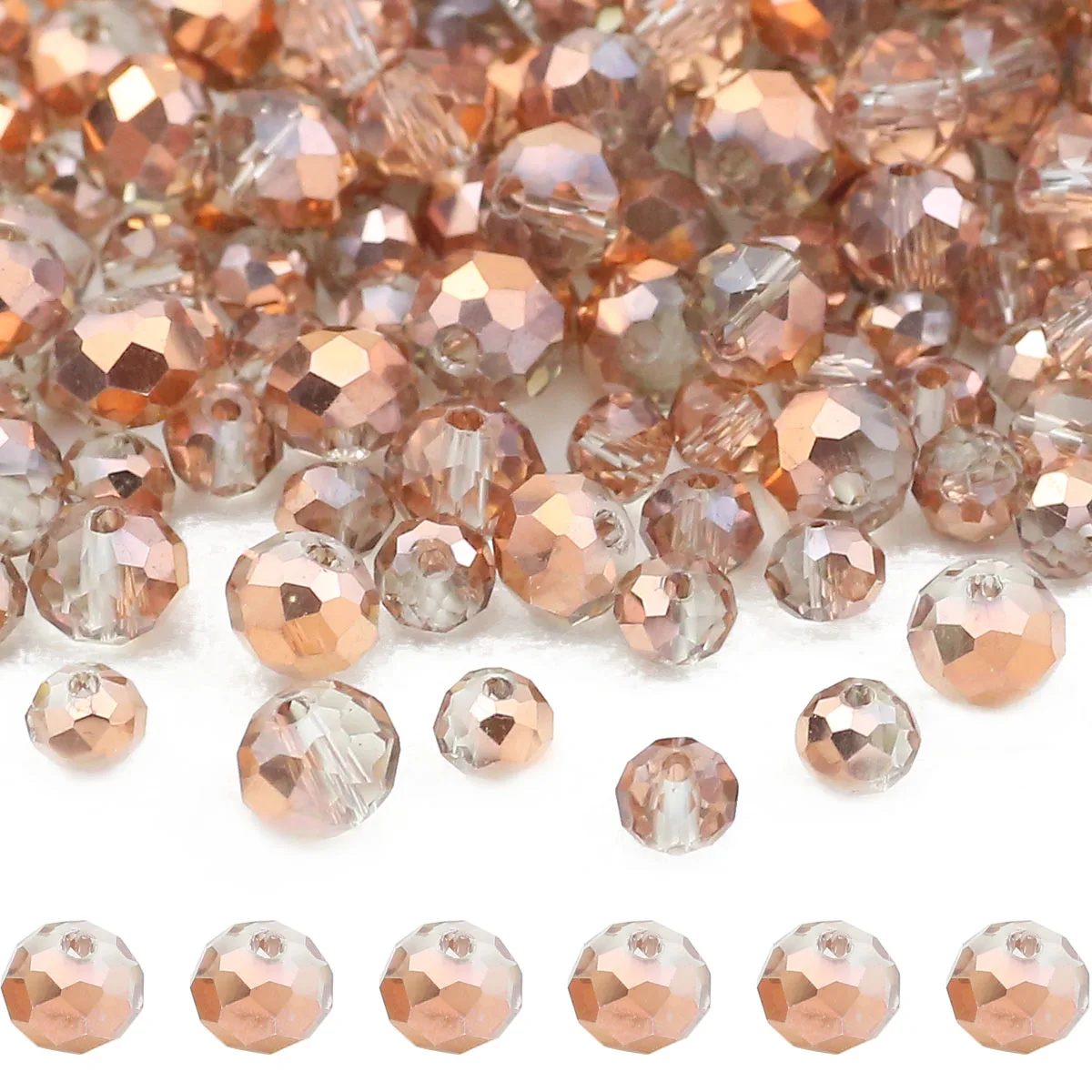 Rose Golden Flat Faceted Round Transparent Glass Spacers Loose Beads For Jewelry Making DIY Bracelets Accessories 3/4/6/8MM