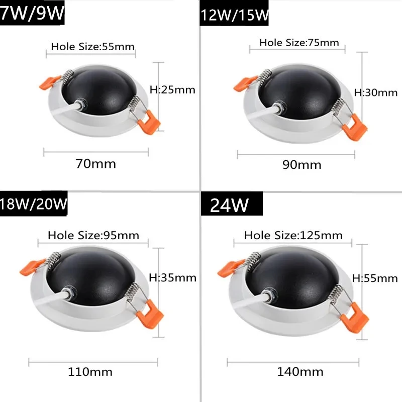 Round Embedded Dimmable LED Downlight Black/White 12W 15W Light Source 360 ° Adjustable COB Ceiling Spot Backlight Lobby Bedroom