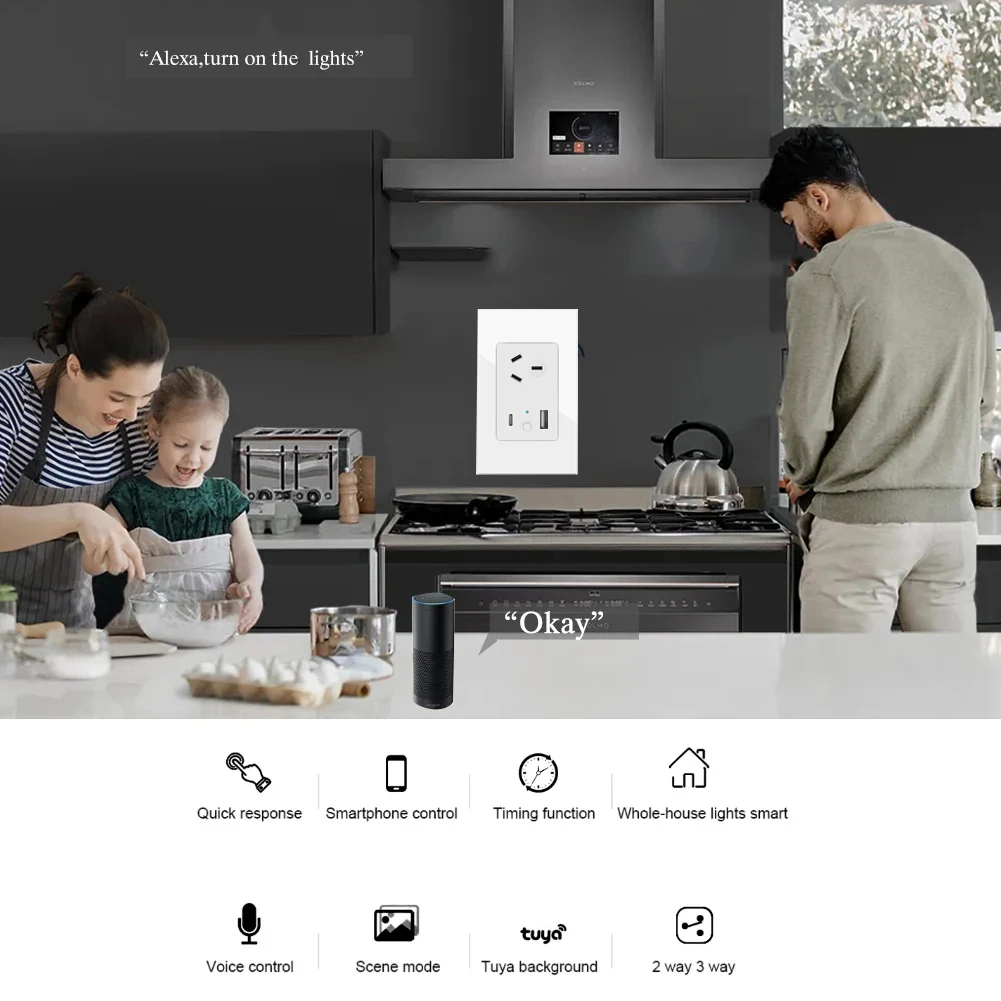 Tuya Wifi Smart Touch Switch Wall Socket AU Electrical Plug Glass Panel USB Type C Charger Outlet Plates by Alexa Google Home