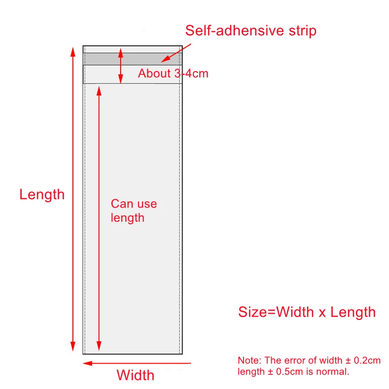 StoBag 200pcs Cellophane Self-adhesive Bag Transparent Long Sealed Jewelry Pen Necklace Gift Packaging Plastic Clear Pouches