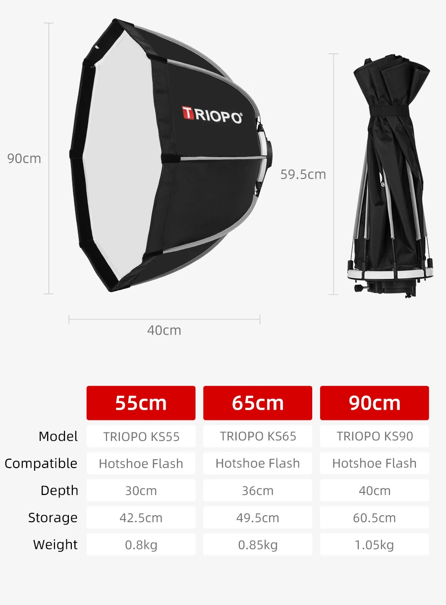 TRIOPO 55cm 65cm 90cm 120cm Foldable Octagon Softbox S Bracket Hand Grip for Godox V860III TT600 Yongnuo Speedlite Flash Light