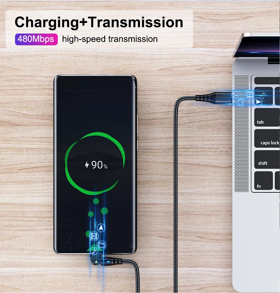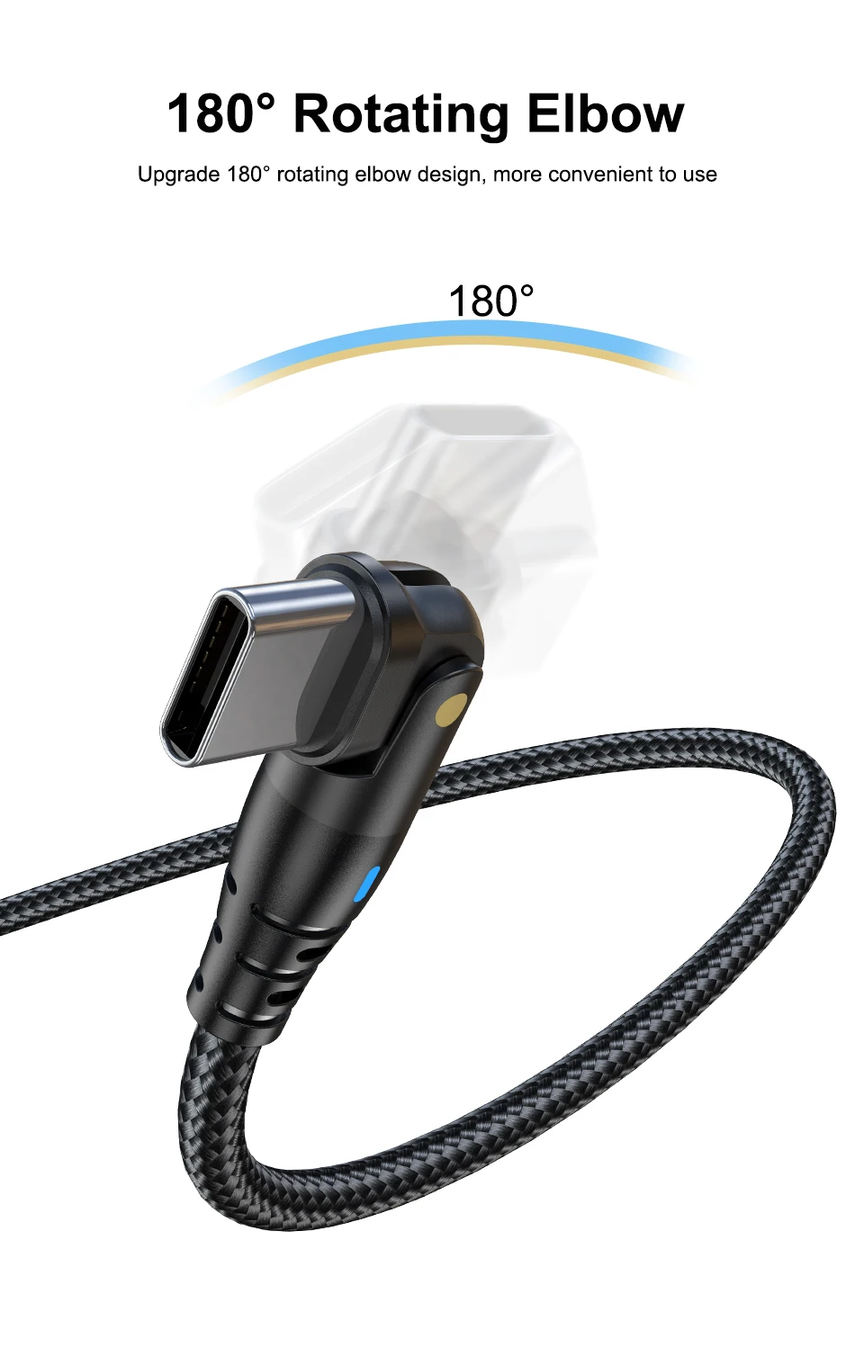 UKGO 60W USB C To USB Type C Cable Quick Charge 4.0 3A Fast Charging Cord 180 Degrees Rotating Cable For Iphone15 Samsung Xiaomi