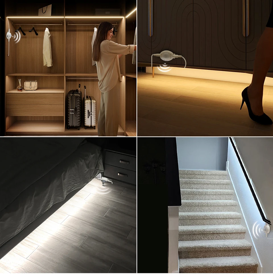 Wireless PIR Motion Sensor LED Under Bed Night Light 12V LED Light Strip Kitchen Cabinet Bedroom Stairs Hallway Emergency Lamps