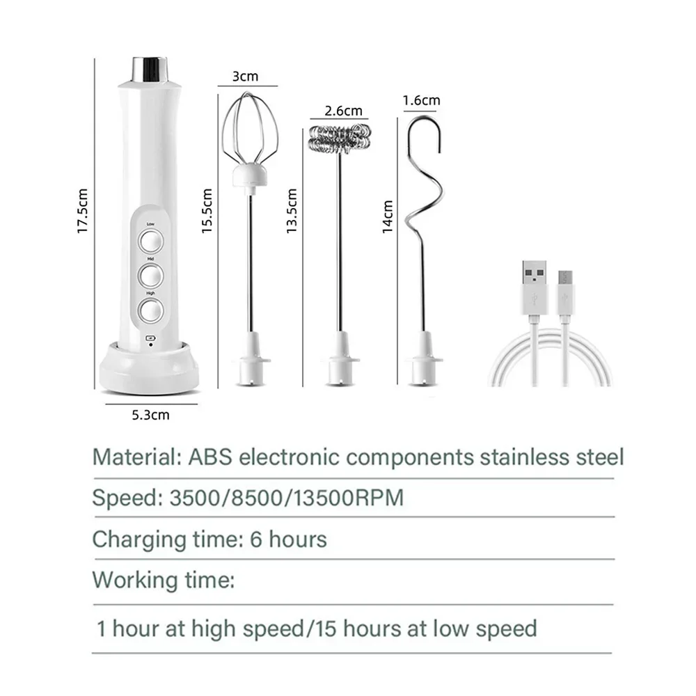 Wireless Rechargeable Electric Milk Frother 3 Speeds Handheld Foam Maker Latte Cappuccino Hot Chocolate USB Rechargea Home