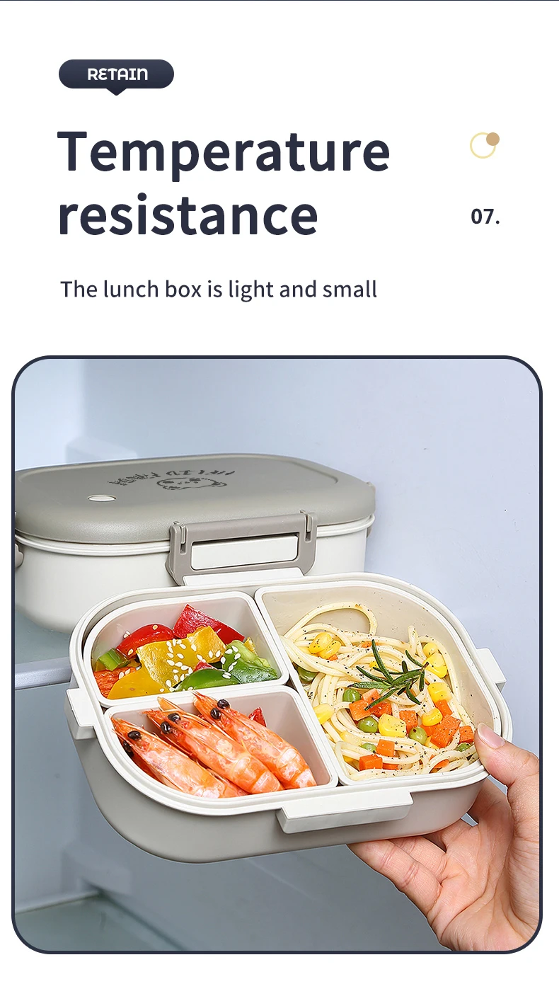 WORTHBUY Removable 3-Compartment Lunch Box 800ml Portable Plastic Bento Box Microwave School Student Kid Sealed Food Container